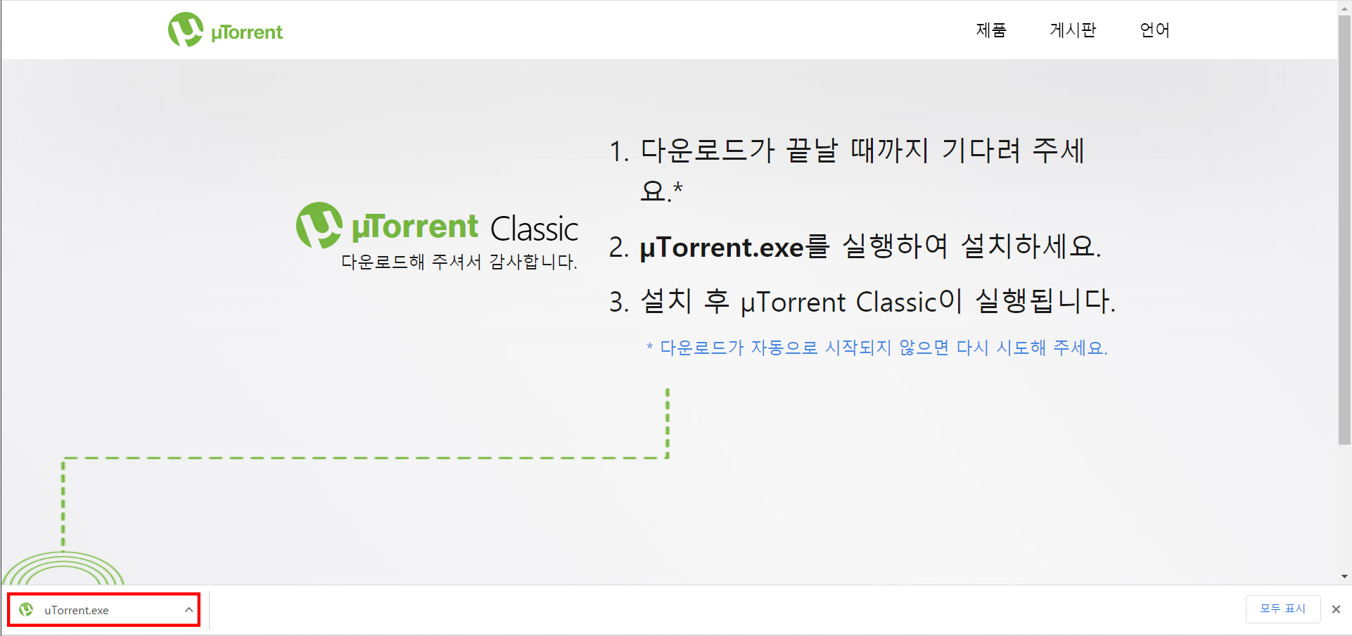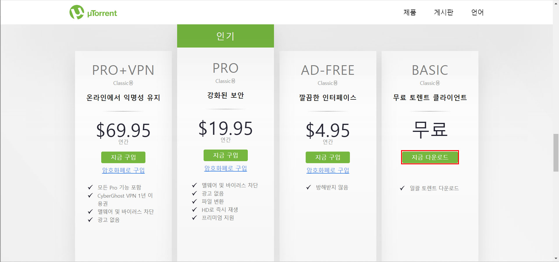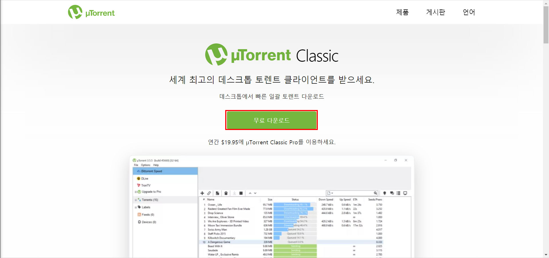 토렌트 공식 다운로드 사이트 - https://www.utorrent.com/intl/ko/desktop/