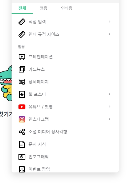 프레젠테이션부터 해서 카드뉴스, 포스터, 상세페이지 만들기 등등 각종 템플릿의 디자인을 만드실 수 있습니다.