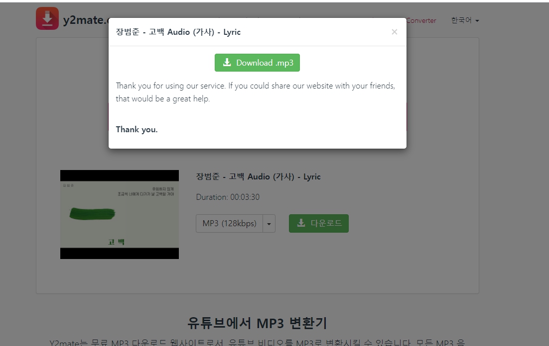 MP3파일 다운로드하기 버튼을 클릭해주세요.