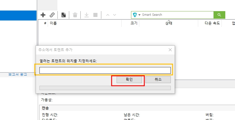 주소에서 토렌트 추가라는 창이 뜹니다.