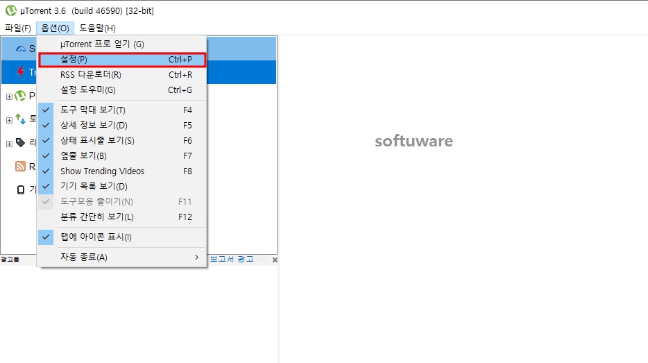먼저 토렌트 파일을 찾아 설치하기 전에, 토렌트 파일을 다운받을 폴더의 위치를 설정해줍시다.