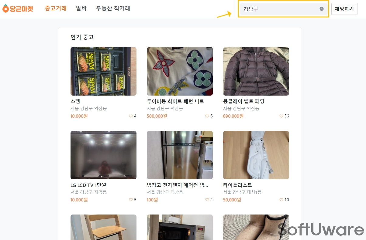그리고 채팅하기 옆에는 물품 검색 창이 있습니다.