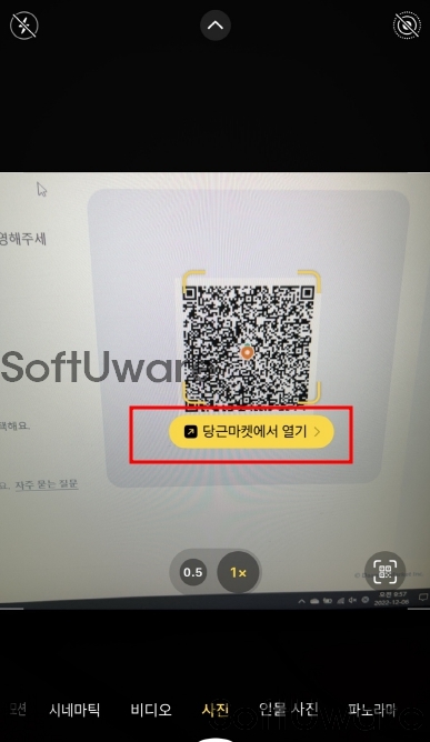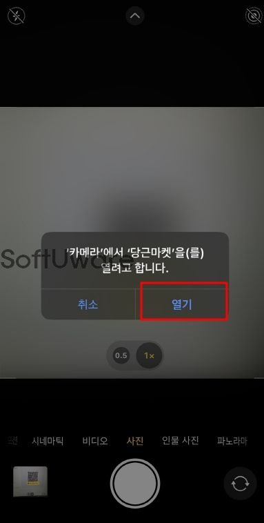 그러면 자동으로 이 QR코드를 스캔하게 되는데요. 그러면 이제 '당근마켓에서 열기'라는 창이 생길 것입니다.