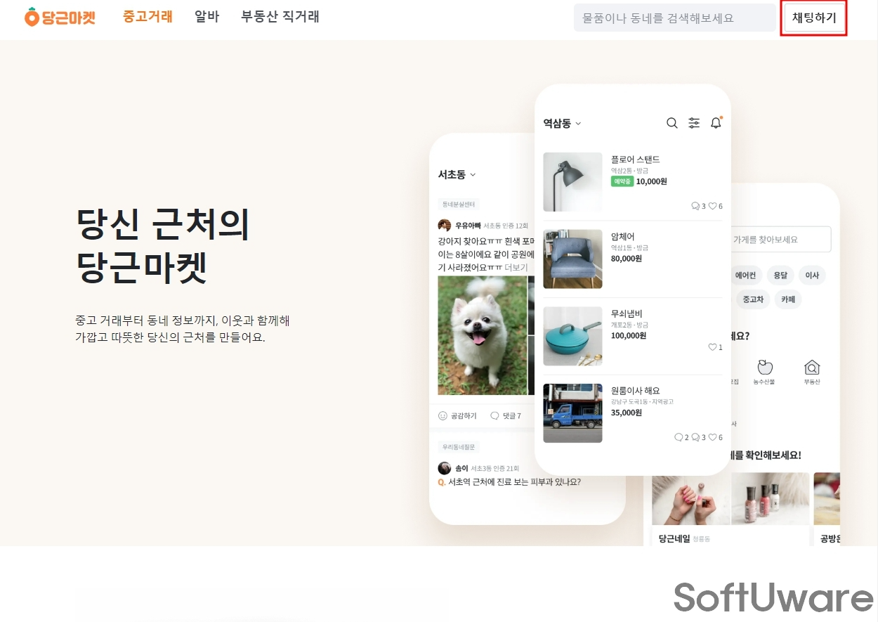 당근마켓의 물건을 찾아보고 채팅도 사용하실 수도 있습니다.