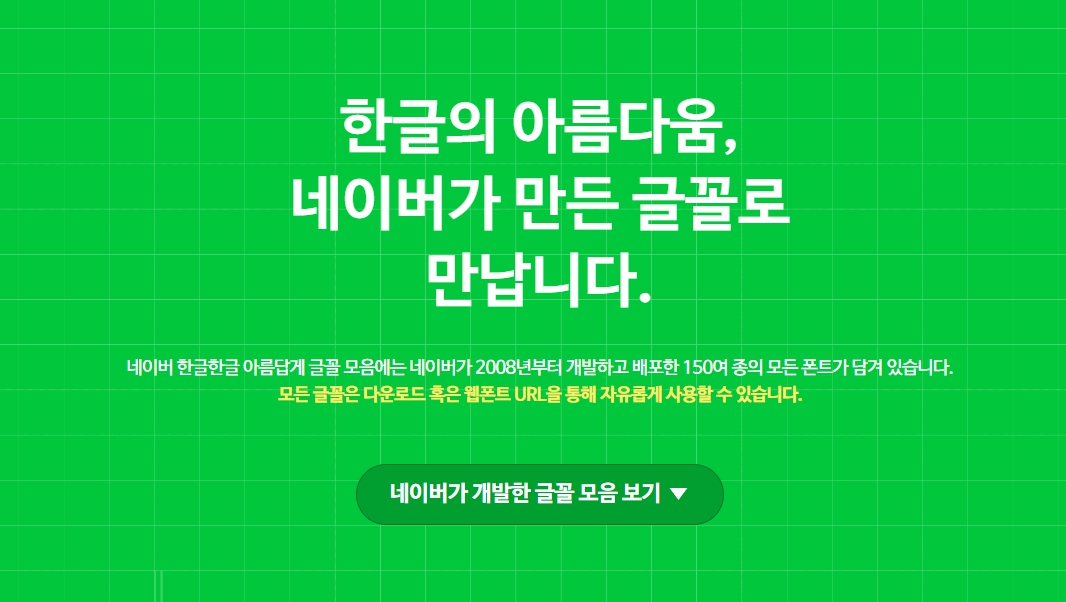 네이버 글꼴은 개인 및 기업 사용자를 포함해서 모든 이들에게 무료로 제공되고 있습니다.