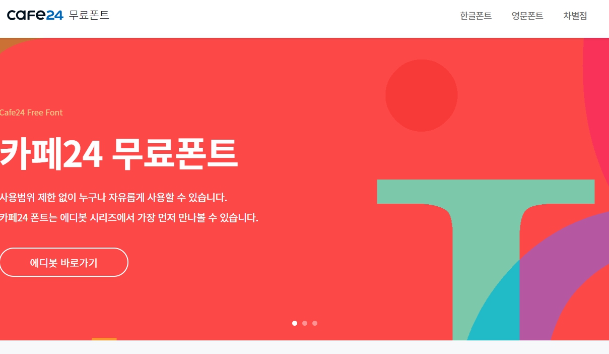 카페 24 사이트에서도 사용범위 제한없는 무료 폰트들을 다운받으실 수 있습니다.