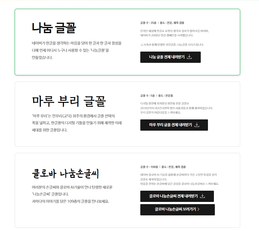 저는 네이버 나눔 글꼴 애용하는데요. 네이버답게 완성도 높은 글꼴인 것 같습니다.