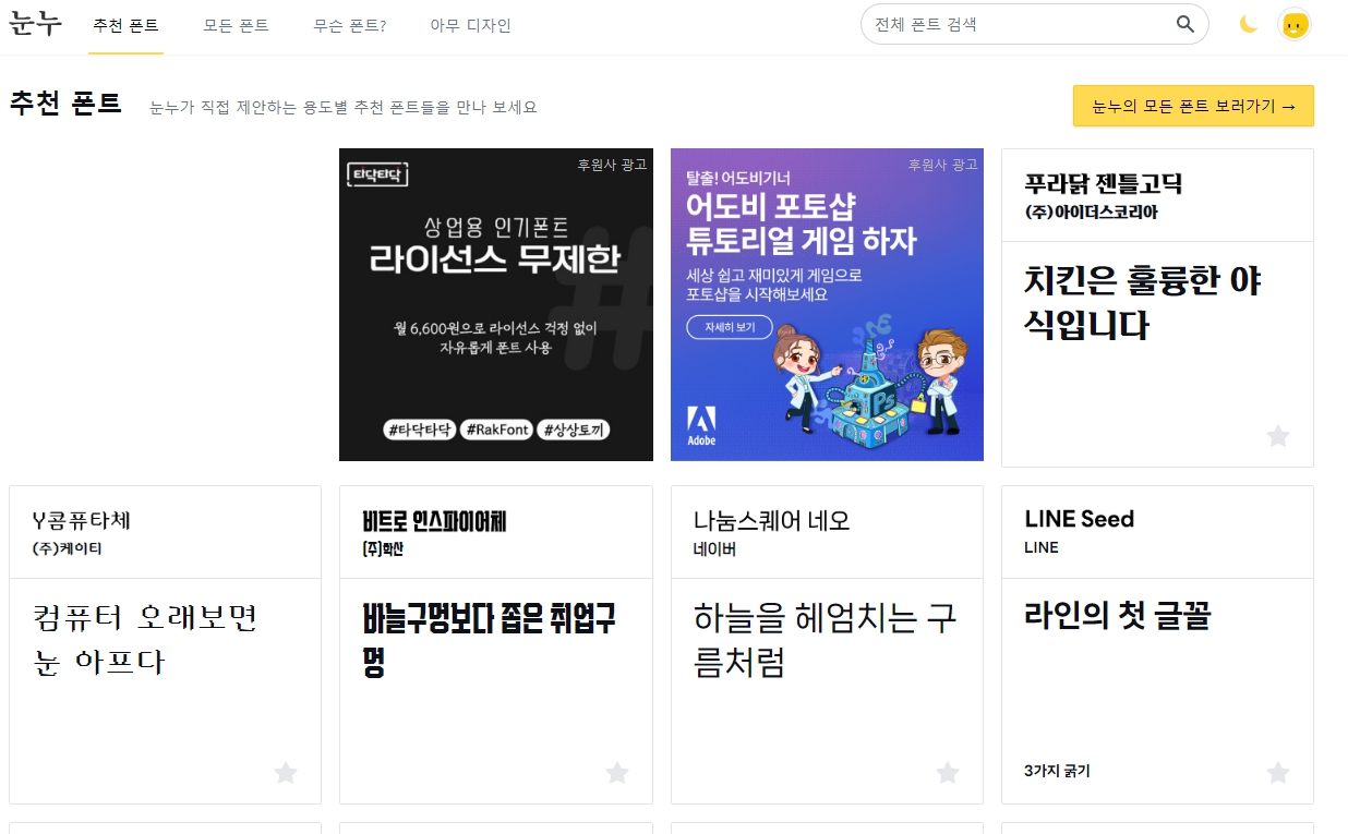- 눈누 (상업용 무료 한글 폰트) (추천)