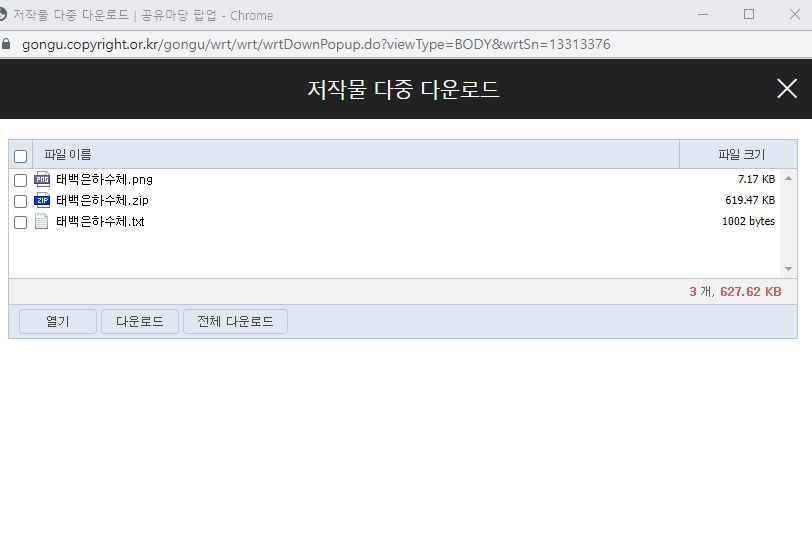 '전체 내려받기'를 하시면 해당 글꼴종류의 글꼴들이 다운됩니다.