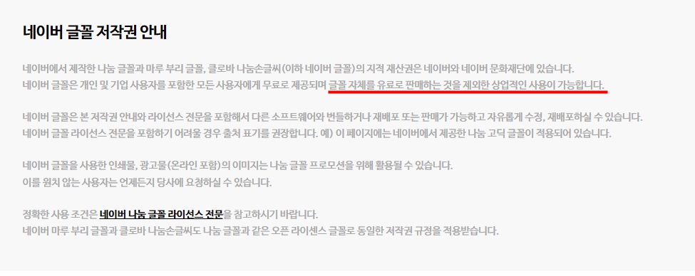 따라서 네이버가 제공한 글꼴을 따로 팔지 않는 이상, 모든 상업적 사용이 가능합니다.
