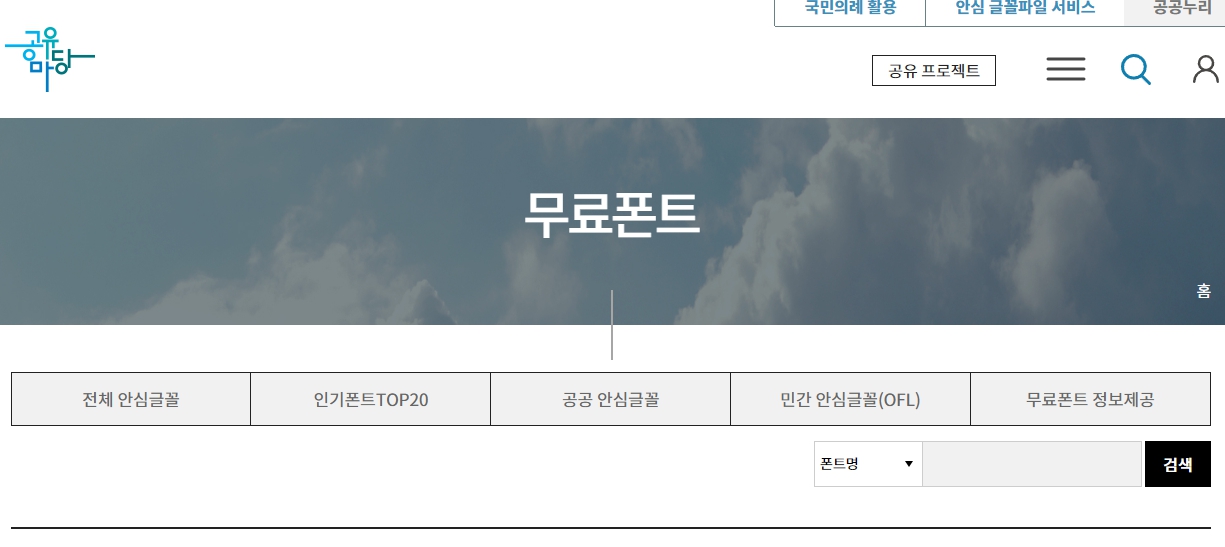 공유저작물 사이트인 공유마당에서도 무료폰트를 다운할 수 있습니다.