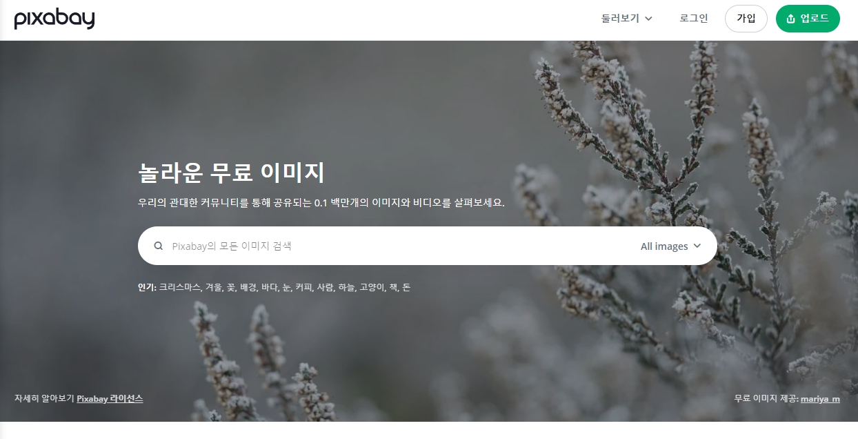픽사베이는 가장 많은 사람들이 사용하는 대중적인 무료 이미지 사이트입니다.
