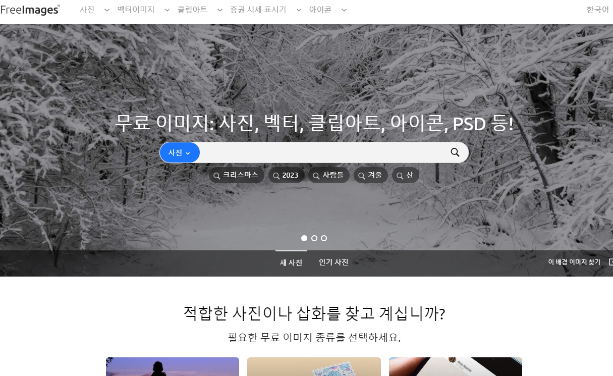 사실 픽사베이보다 더 유명하진 않지만 체감상 더 자주 사용하는 사이트입니다.