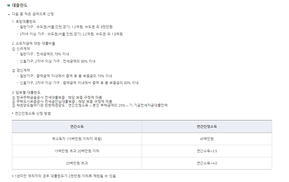 대출한도 또한 위의 내용처럼 소득과 가구 형태에 따라 달라집니다. 참고하시길 바랍니다.