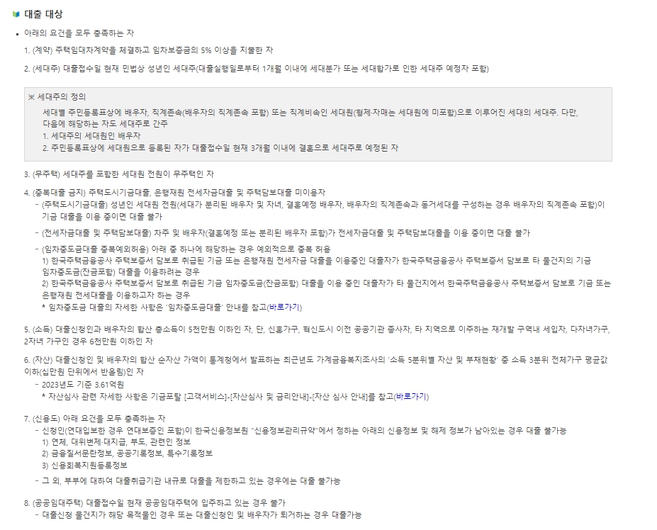 버팀목 전세자금대출 대상 및 신청자격(조건)