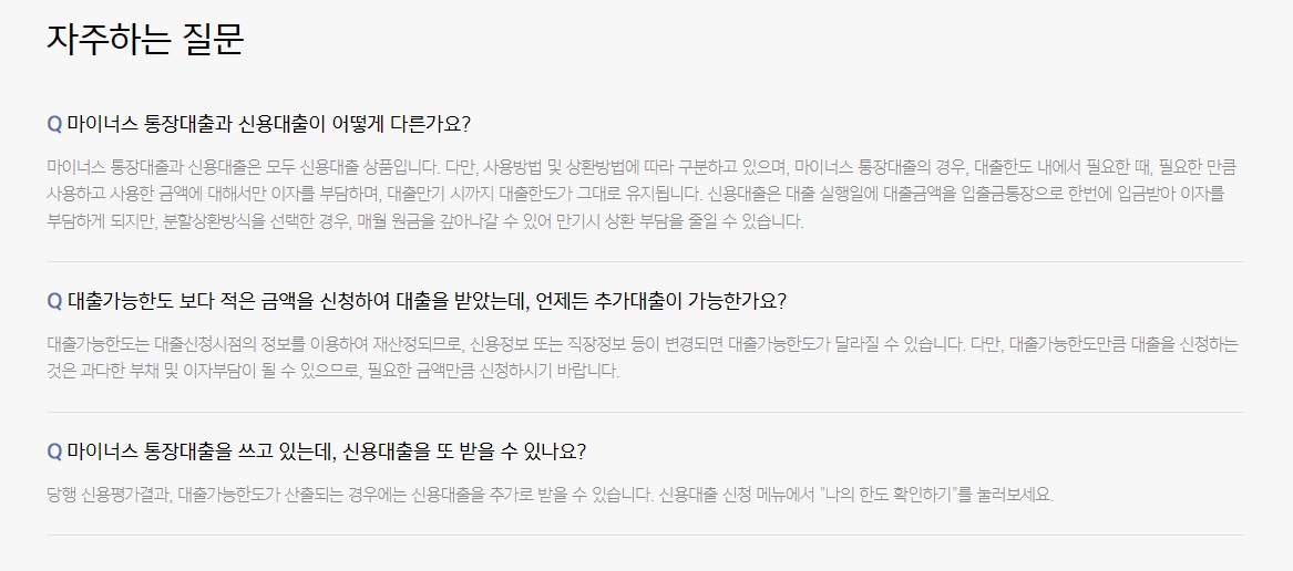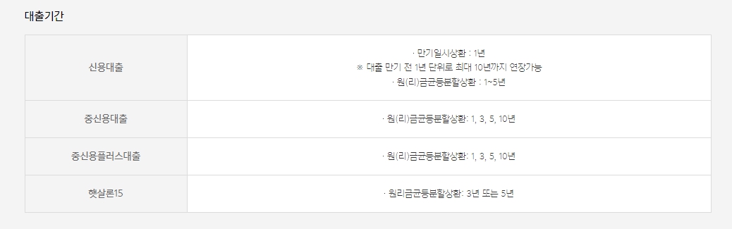 역시 신용대출 종류에 따라 조건이 달라집니다.