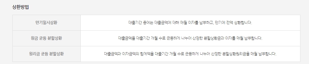 카카오뱅크의 상환방법은 다음 세가지로 정할 수 있습니다.
