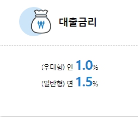 우대형은 연1%, 일반형은 연 1.5%의 대출 금리를 가집니다. (정말 싸네요..)