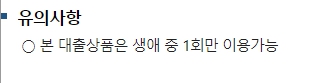 아쉽지만 이 상품은 생애 중 1회만 이용이 가능한 대출상품입니다.