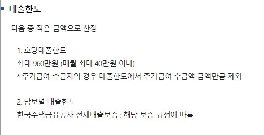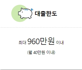 대출한도는 최대 960만원 이내로, 월 40만원 이내에 해당합니다.