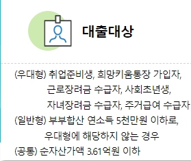 우대형의 경우 취업준비생, 희망키움통장 가입자, 근로장려금 수급자, 사회초년생,