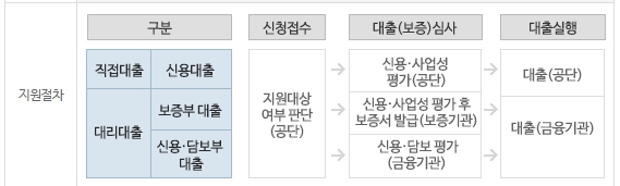 직접대출과 대리대출의 지원절차는 각각 아래와 같습니다.