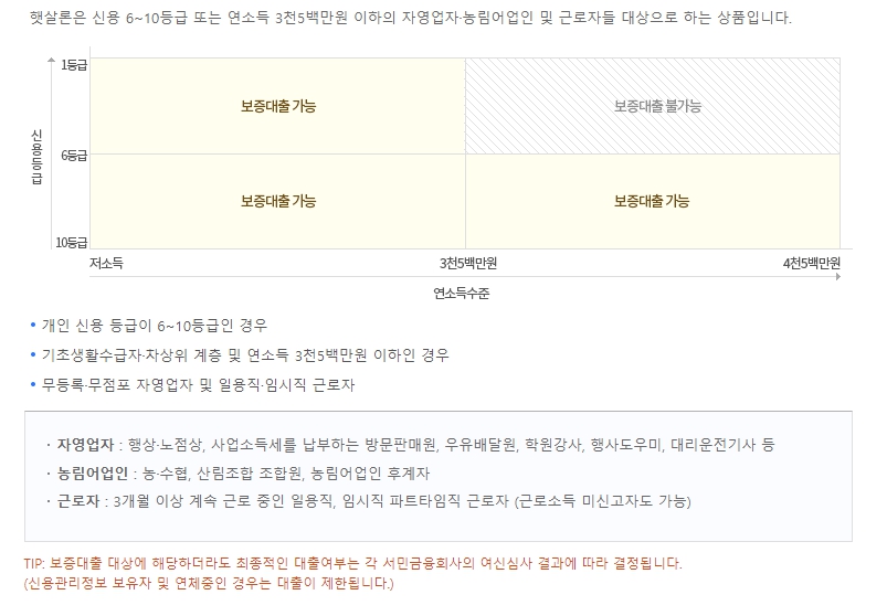 햇살론 대출의 대출 자격은 아래와 같습니다.