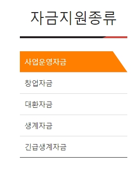 자금지원의 종류는 다음과 같이 나뉘어집니다.