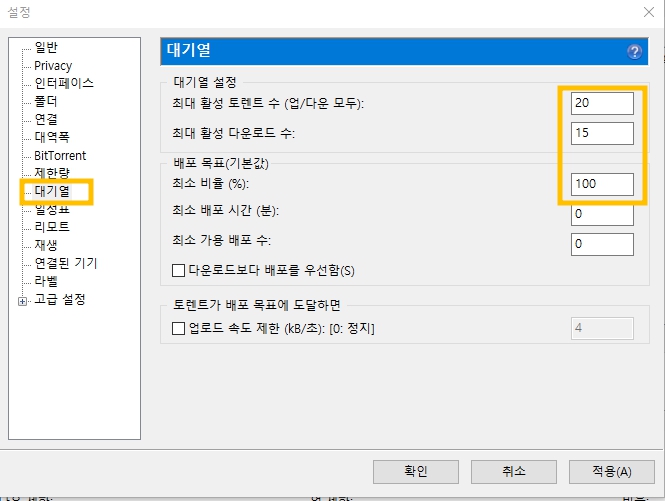 최대 활성 토렌트 수는 20