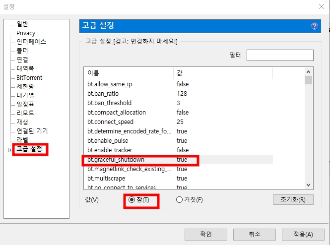 bt.graceful_shutdown을 참(T)로 바꾸어줍니다.